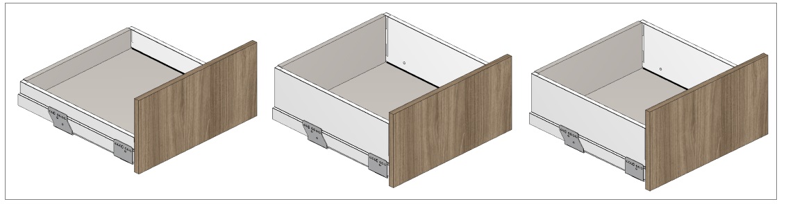 1. Disponibilidad de dos tipos de frentes: externa y empotrada. Pueden utilizarse con los elementos de la pestaña Internos del Constructor de Armarios, permitiendo una apertura deslizante similar a los cajones. (2139152)