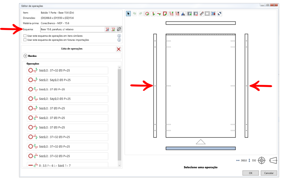 To explain the concept of operations schemas, let us imagine that we will record the drilling of a base using minifix + cavilha.
