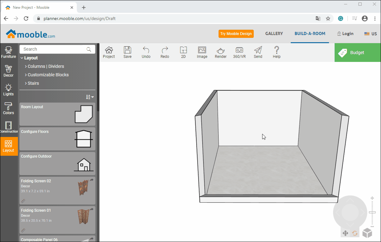 With Mooble open, the first step is to set up the walls. There are two ways to build walls: