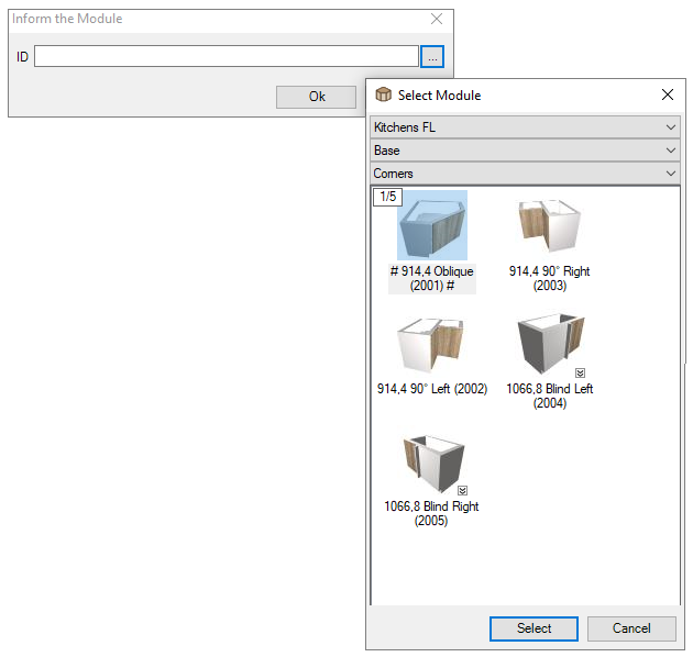 2. Corner Modules: start with straight corners, duplicated, representing Left and Right, followed by L and Oblique Corners, if any.