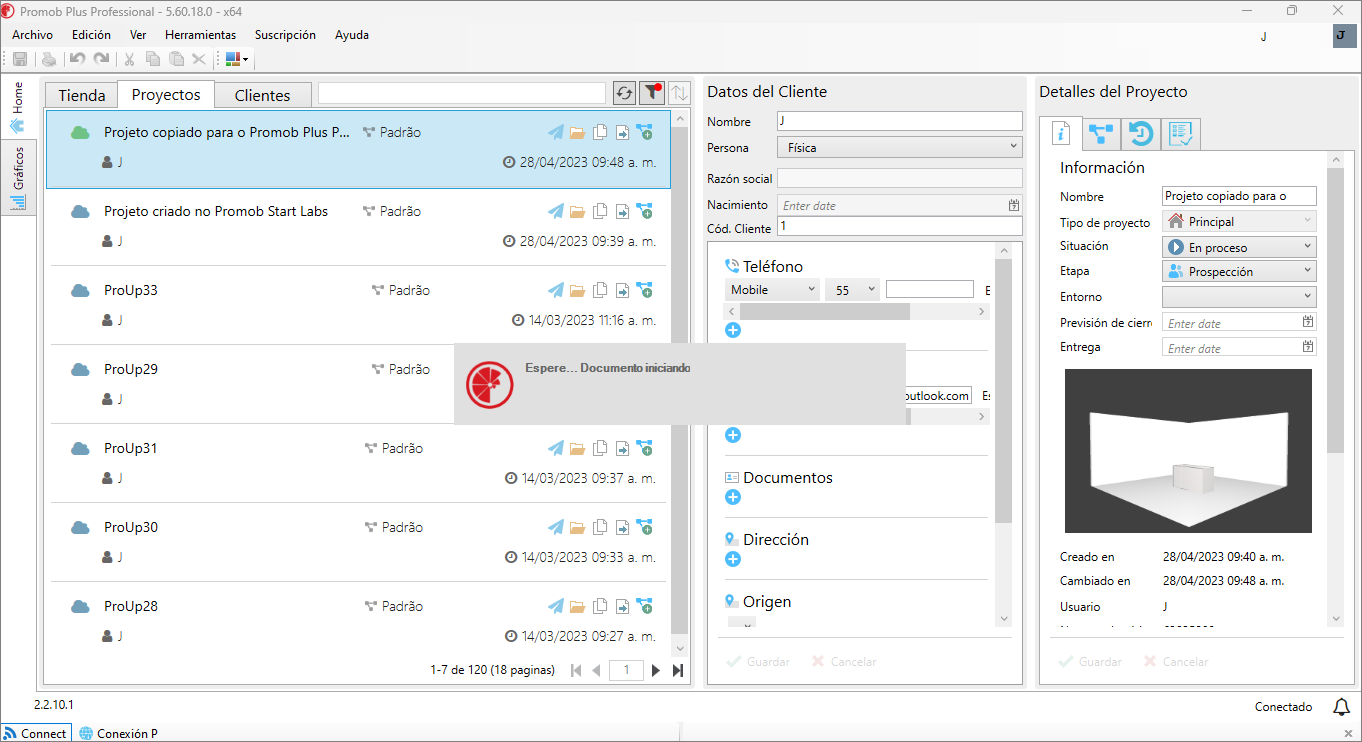 Es posible, al abrir un proyecto, identificar qué proyecto no se ha guardado en Promob que se está utilizando en la apertura.