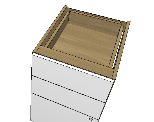 C – Espacio Superior Contra Frente: Establece la distancia entre el extremo superior de la frente del cajón y de la contra frente de la caja. Cambia la altura de la contra frente.