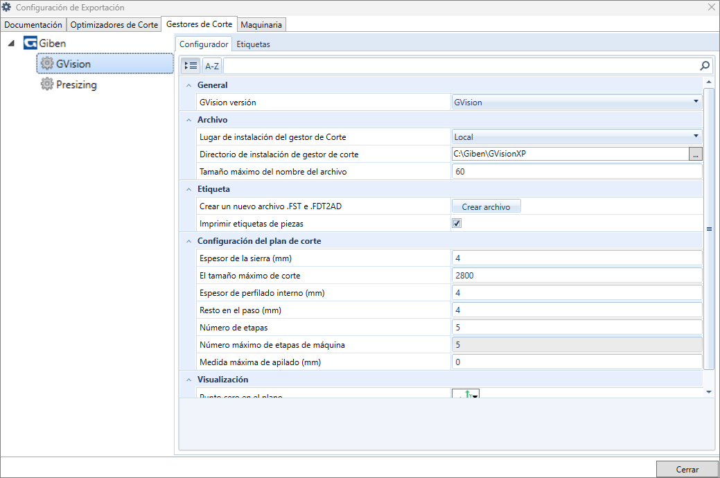 Promob Cut Pro ofrece los plugins de gestión de corte de Giben, que son GVision, GDriveRT, GDriveQ, GvisionXP, G57 y Presizing GVision XP.