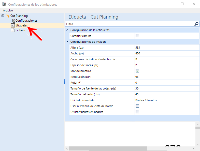 1. Dentro de Promob, en Configuración de Optimizadores, acceda a Etiquetas;