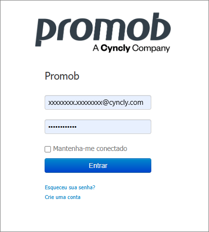 4. Se muestra la pantalla de inicio de sesión de Promob. Ingrese su correo electrónico y contraseña.