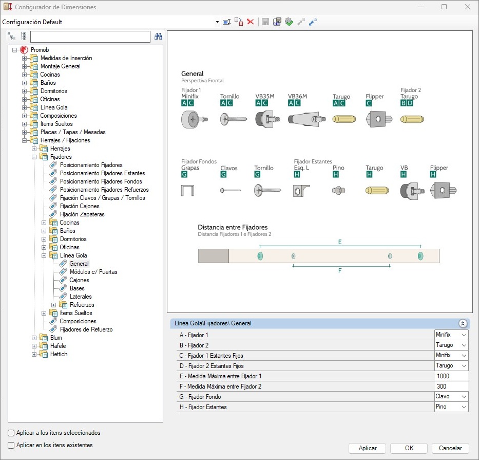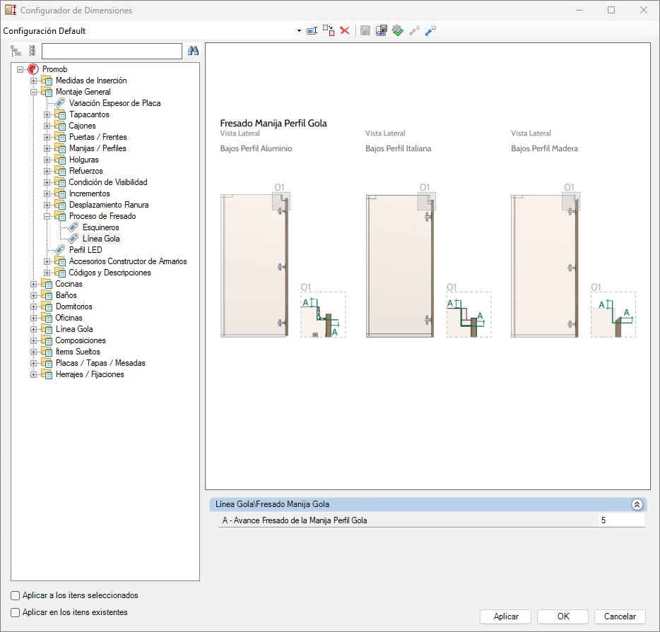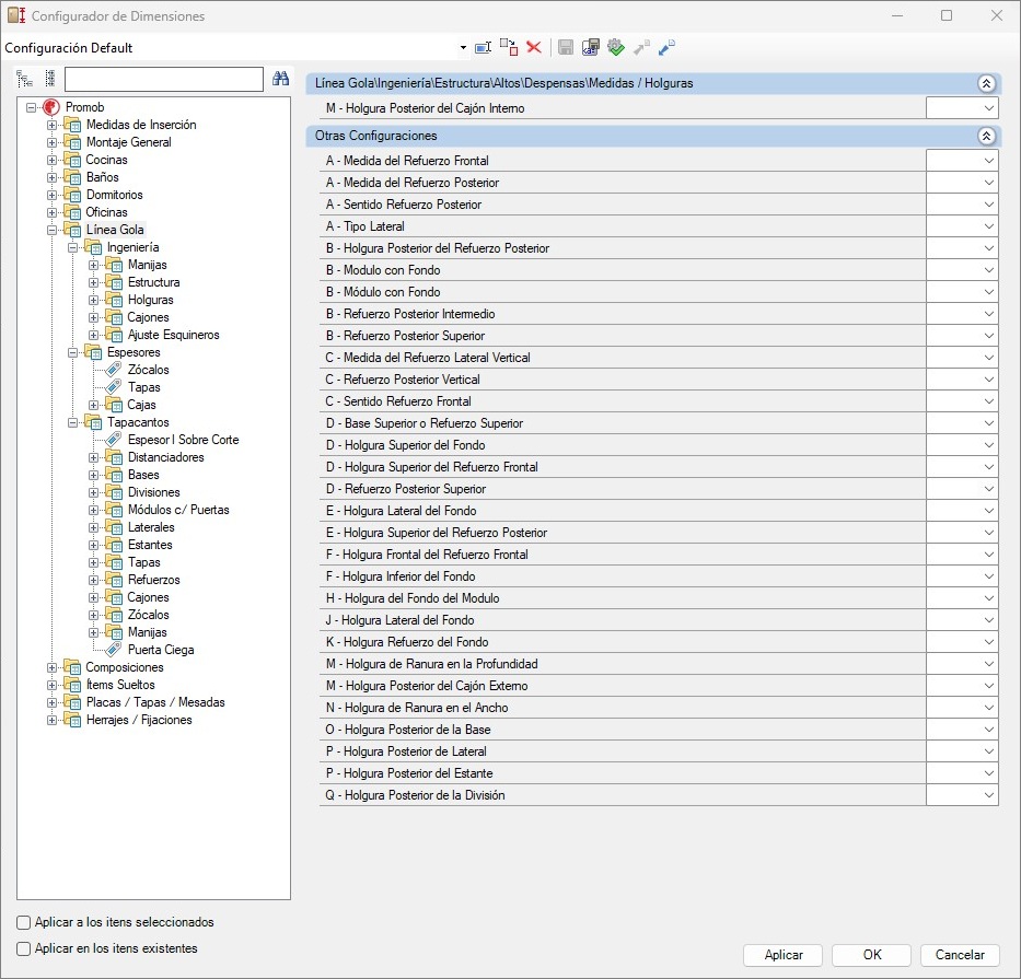 Línea Gola - Ingeniería - Estructura - Bajos - Cajoneros - Medidas/Holguras