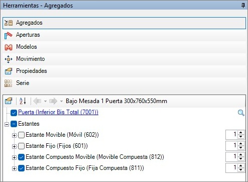 2. Añadido el nuevo modelo de estante compuesto para todas las líneas, biblioteca y Constructor de Armarios. Está disponible en la herramienta de Agregados de cada módulo. (2244314)