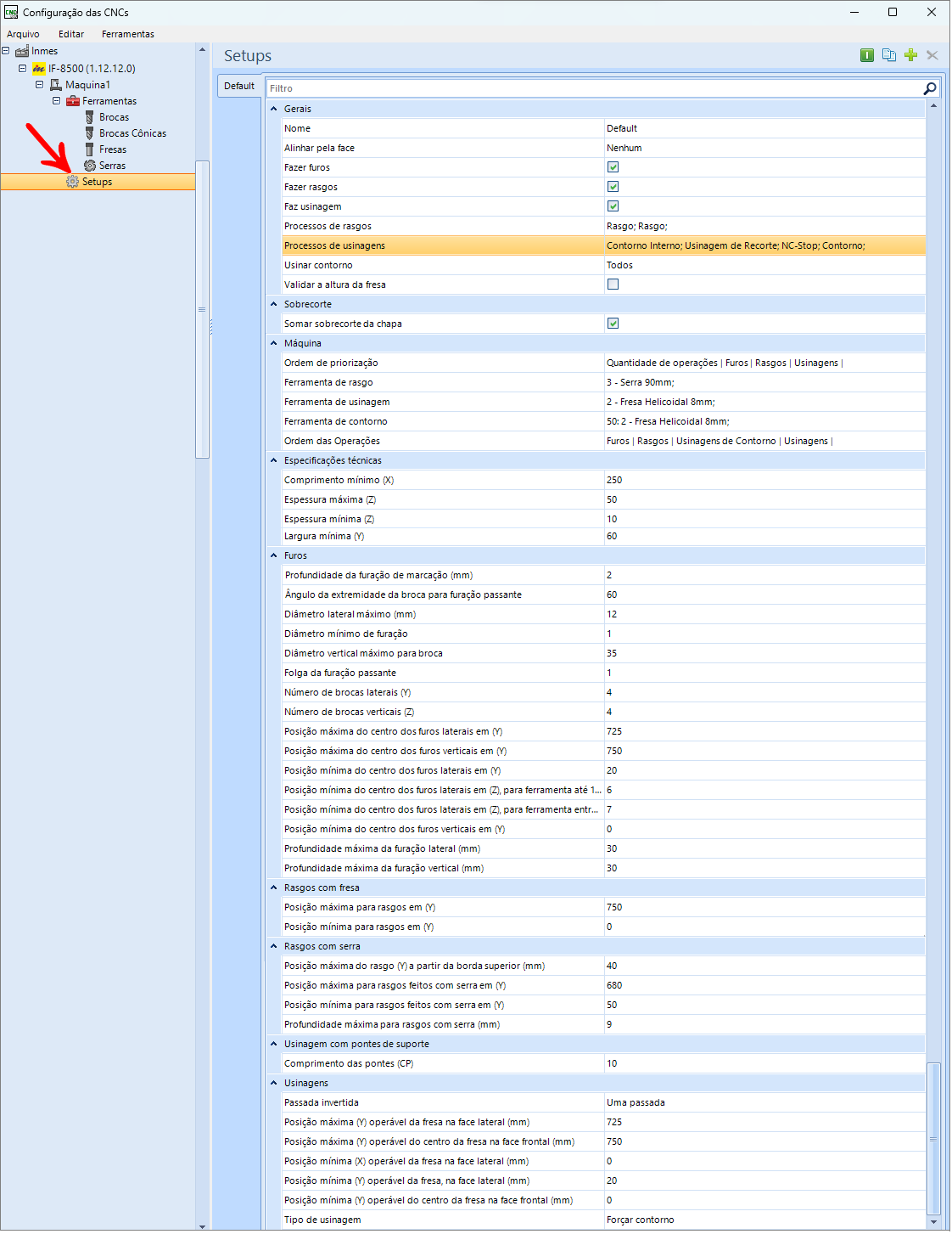 Fazer usinagem de perfil: com a opção marcada as usinagens de perfil cadastradas serão geradas nos programas de máquina. Para mais informações clique aqui.