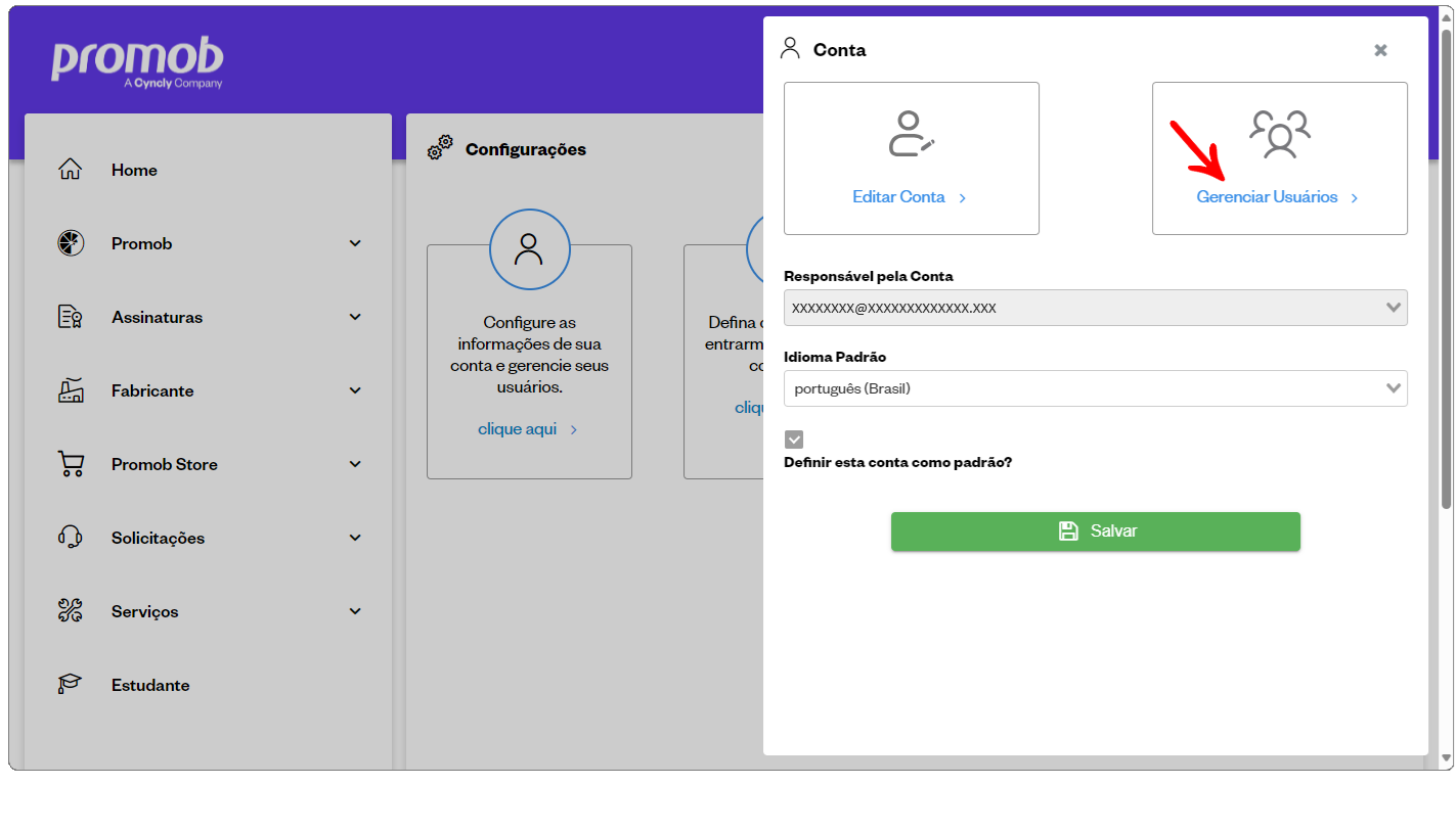 É possível no portal da Promob, estabelecer configurações para uma melhor acompanhamento da sua conta, facilitando o gerenciamento das suas assinaturas, onde é possível estabelecer as seguintes configurações: