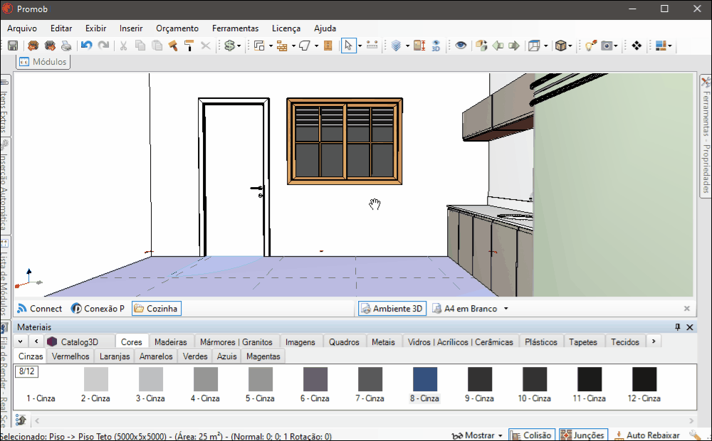1. Na barra inferior do Promob, acesse a aba Materiais.