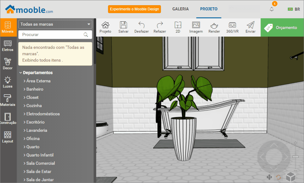 1. Selecionando o item com o mouse: selecione o item e movimente-o dentro do ambiente 3D;