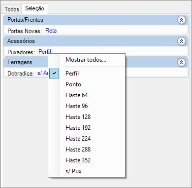 6. Ao inserir a porta/frente no ambiente, será disponibilizado no menu Ferramentas – Modelos a opção Puxadores para alteração.