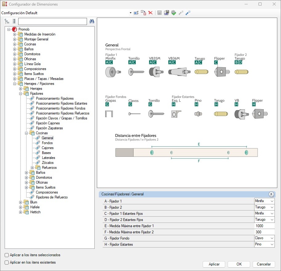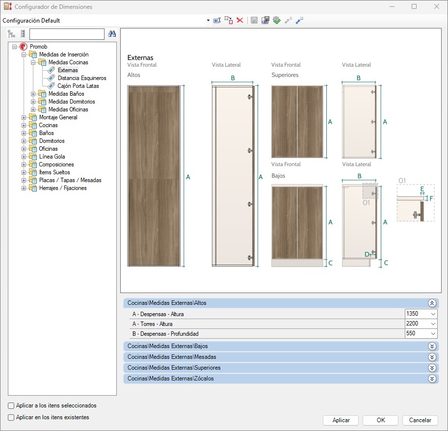 Es posible cambiar las dimensiones productivas y visuales en el Configurador de Dimensiones en: Montaje General - Puertas/Frentes - Cava.