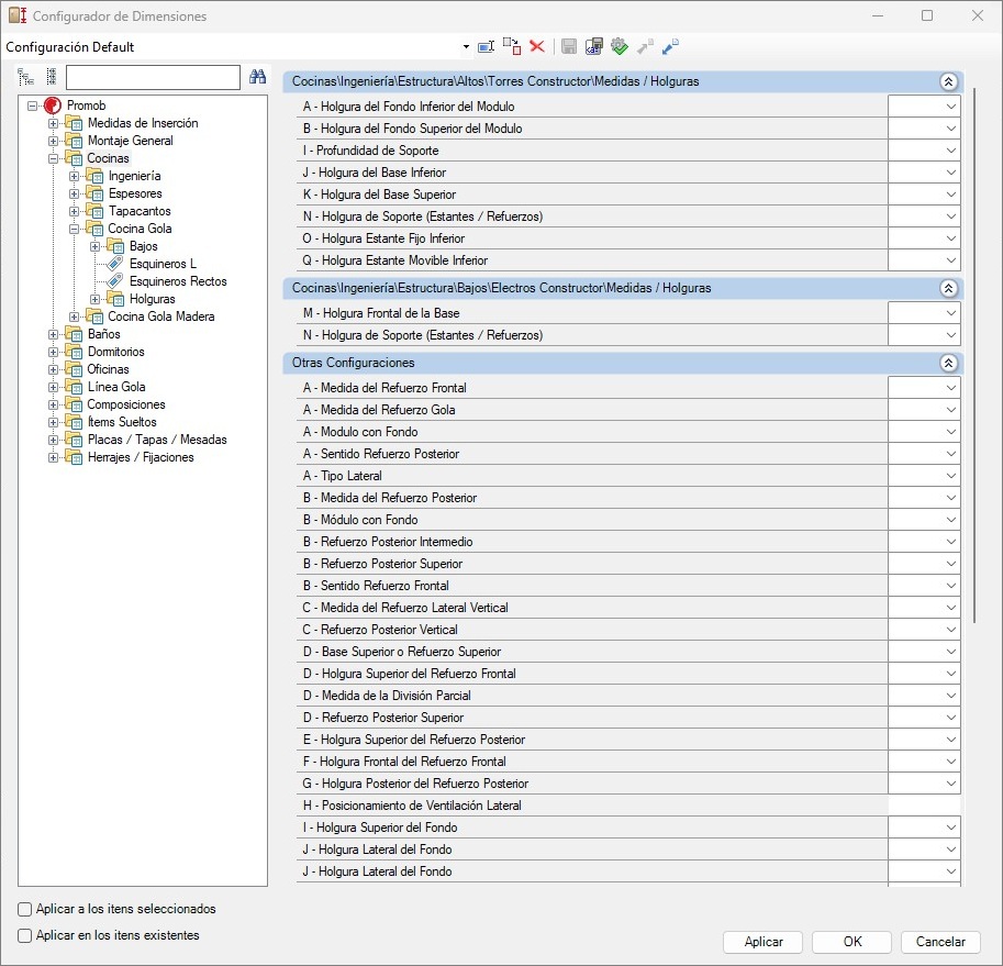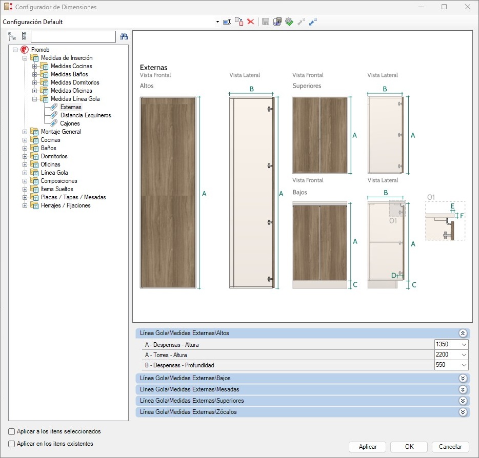 Línea Gola - Ingeniería - Estructura - Bajos - Cajoneros - Medidas/Holguras